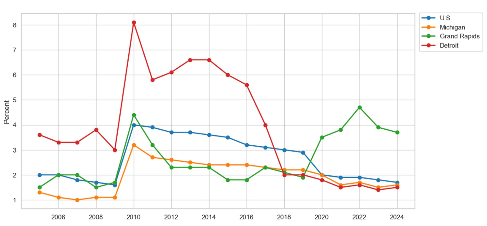 Source: U.S. Bureau of Labor Statistics, Michigan Department of Technology, Management, and Budget.