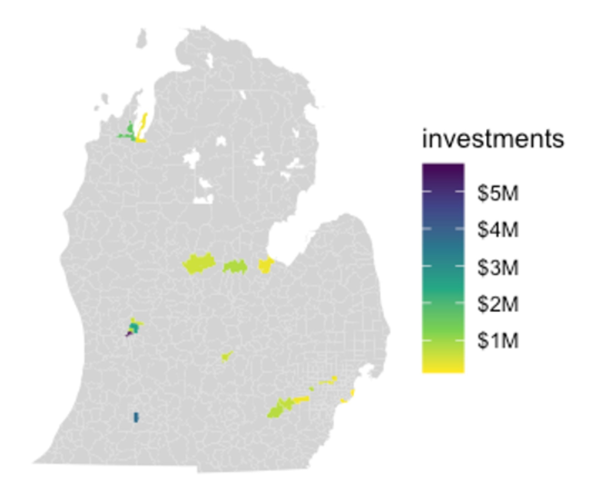 After knowing the geographic distribution of Michigan angel investor funding, it is also interesting to see where these investments are deployed.